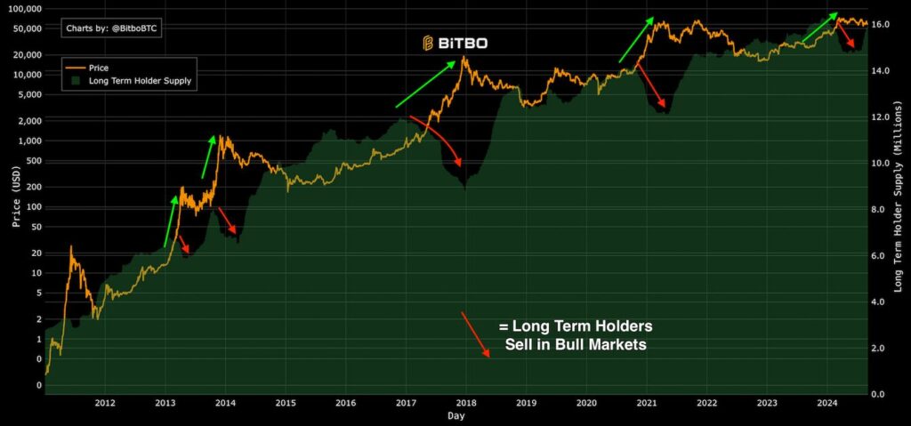 The article notes this reduction in LTH supply is the third major profit-taking/adjustment event since the latter half of 2023. Each time, the sequence was: strong advance → LTH supply reduction → market consolidation or correction (10 %+ drop).