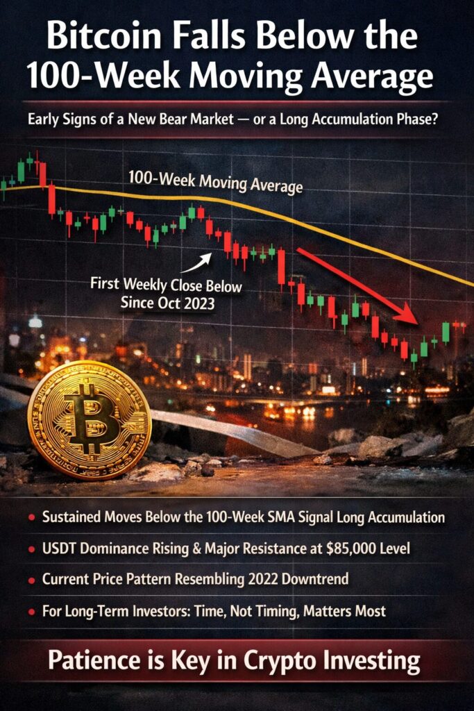 Bitcoin Falls Below the 100-Week Moving Average : Early Signs of a New Bear Market — or a Long Accumulation Phase?