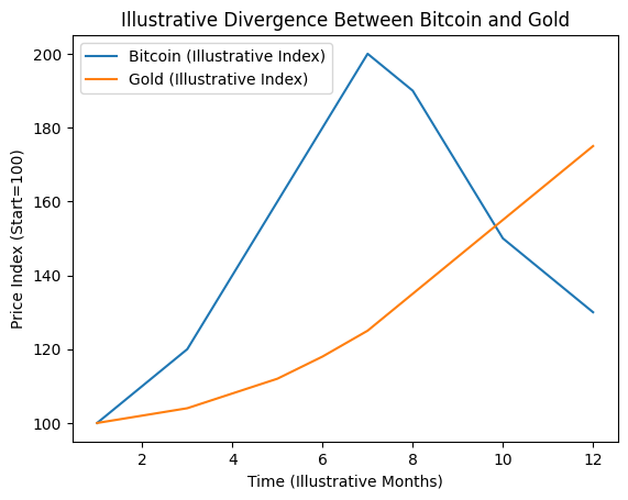 Illustrative Divergence Between Bitcoin and Gold