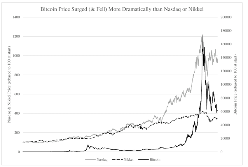 [Comparative performance of Bitcoin vs. Gold vs. Silver (YTD, indexed to 100)]