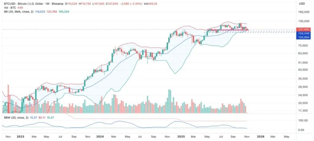 Beyond on-chain data, market structure itself is sending signals. Institutional analytics provider Bitcoin Vector highlights that Bitcoin has been trading in an unusually compressed price range, accompanied by elevated on-chain and exchange volume.