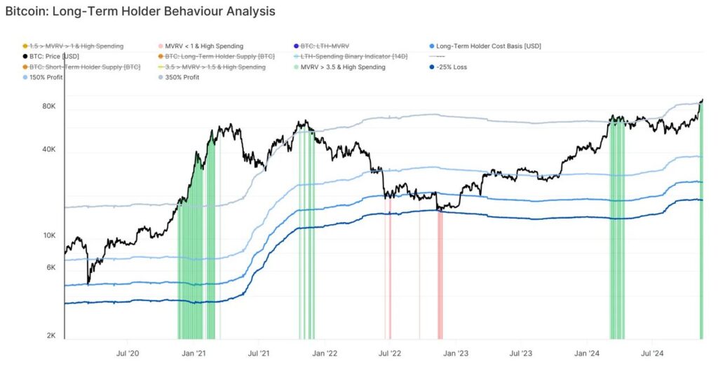 One of the most closely watched indicators in this context is the Long-Term Holder Spent Output Profit Ratio (LTH SOPR). This metric compares the price at which coins were acquired to the price at which they are spent. A value above 1.0 implies profit-taking, while a value below 1.0 indicates loss realization.