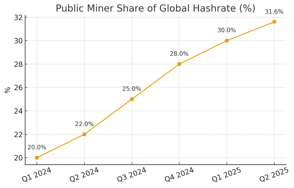 As the largest public miners together recorded realised hash-rates of 150 EH/s a year earlier and reached approximately 326 EH/s in September 2025, representing ~31.6 % of the global network, the competitive landscape has clearly intensified.