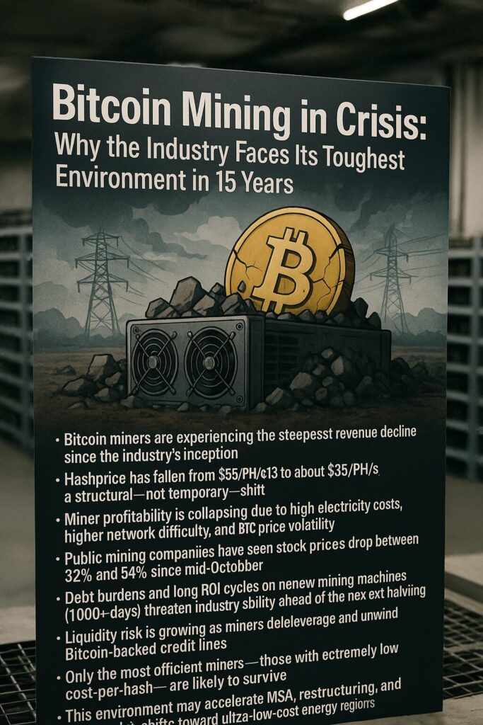 For your audience—investors looking for new crypto assets, revenue streams, and practical blockchain utility—the mining downturn presents both risk and opportunity.