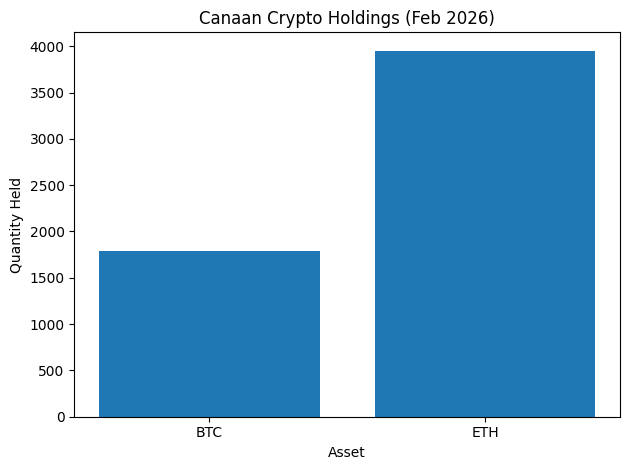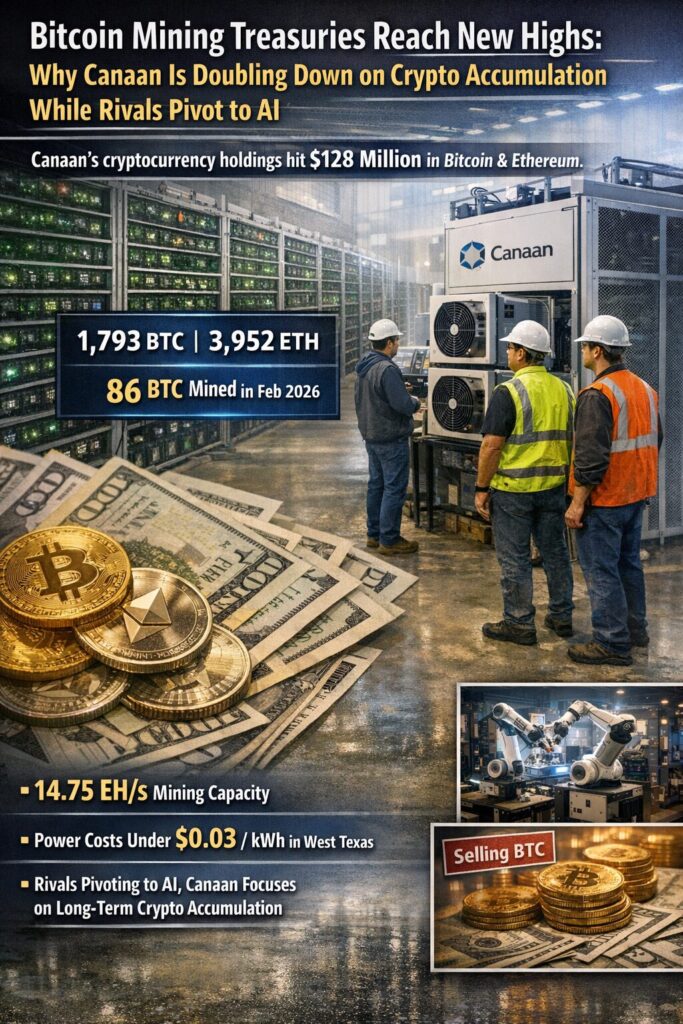Canaan reported that its cryptocurrency treasury reached approximately $128 million, consisting of 1,793 BTC and 3,952 ETH as of February 2026.