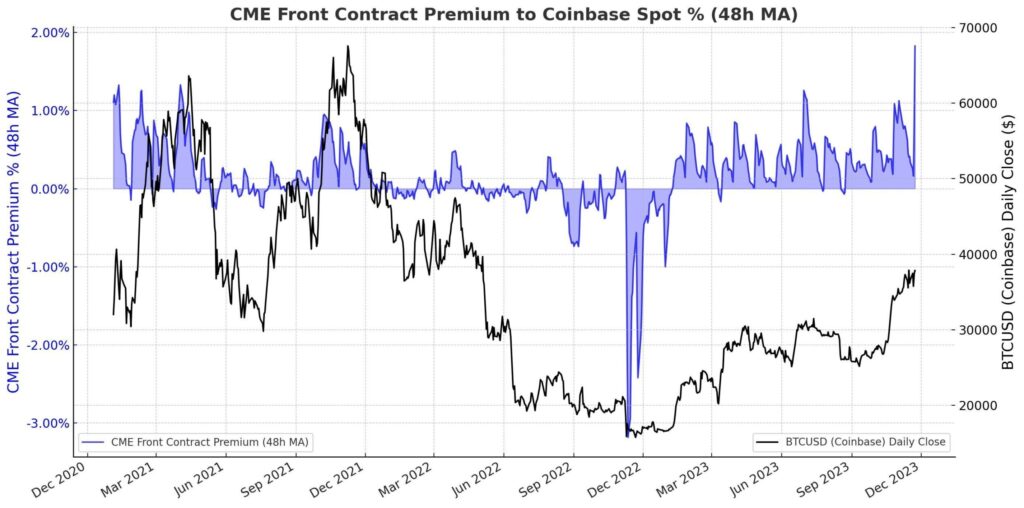 One of the clearest indicators supporting a bullish outlook is the behavior of the derivatives market. Futures premiums on the Chicago Mercantile Exchange (CME) have risen to approximately 7%, indicating strong demand for leveraged long exposure.