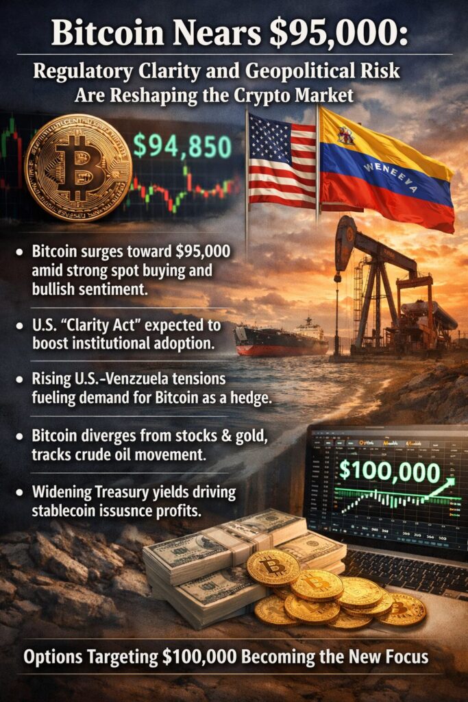 Bitcoin’s approach toward the $95,000 level is not merely a price milestone—it is a reflection of deeper structural shifts. Regulatory clarity, geopolitical risk, evolving macro correlations, and improving crypto-native economics are converging to reshape market perception.