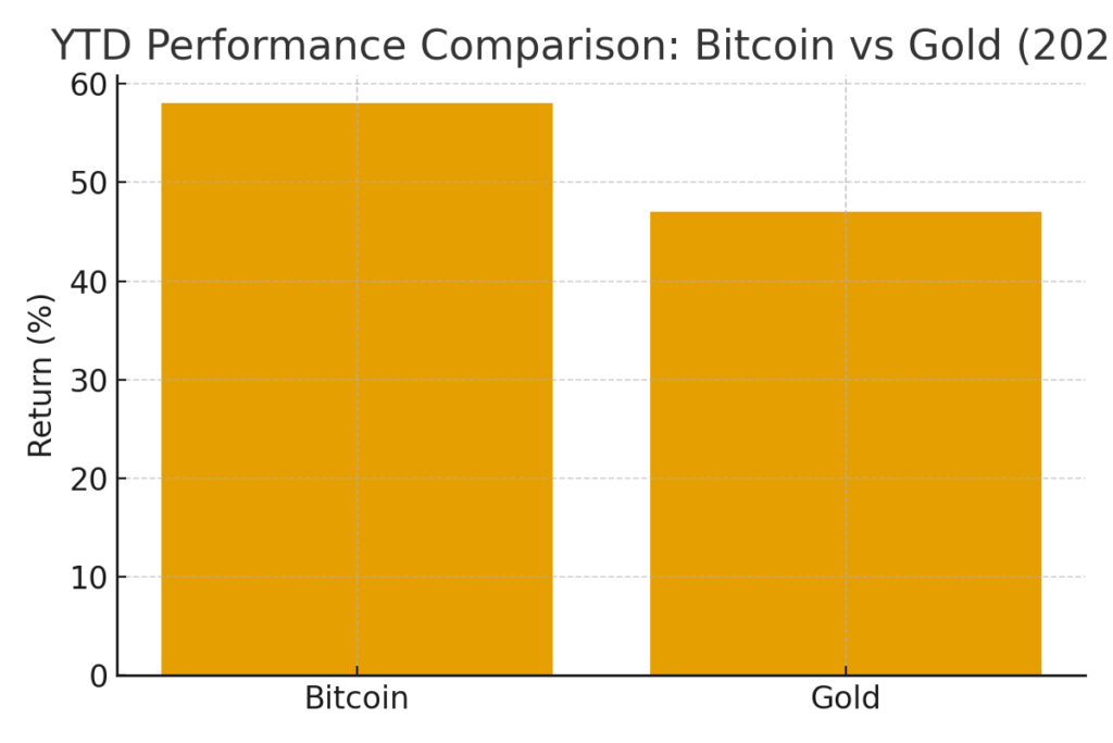 As Jones notes, traditional safe-haven gold has already rallied roughly 46–47 % this year, while Bitcoin has delivered ~50–60 % gains. These twin rallies show that investors are searching for alternative stores of value, and seem comfortable anchoring in both metal and digital scarcity.