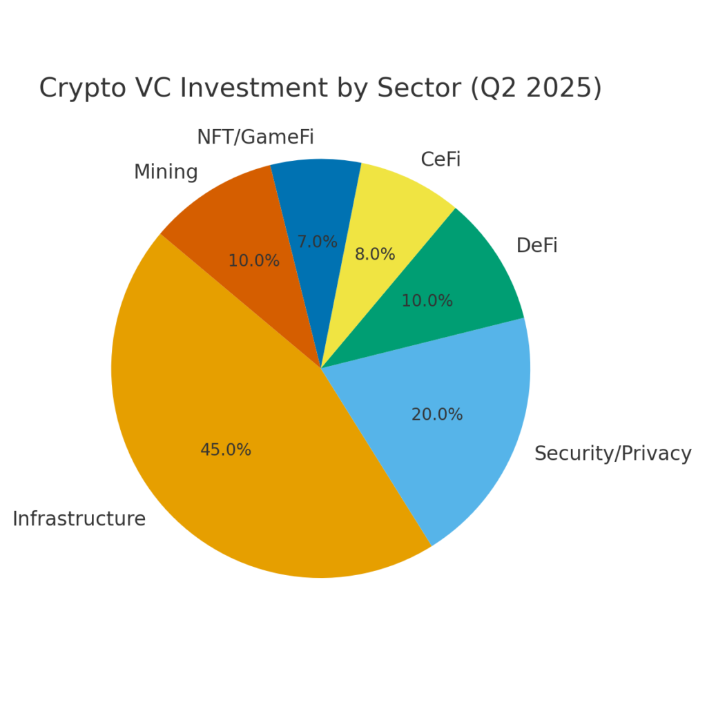 Infrastructure, security/privacy, and mining remain core verticals attracting capital. The U.S. led deal flow (47.8 % of capital), with the U.K., Japan, and Singapore also drawing meaningful allocations.