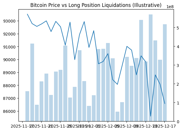 Title: Bitcoin Price vs. Long Position Liquidations (Last 30 Days)