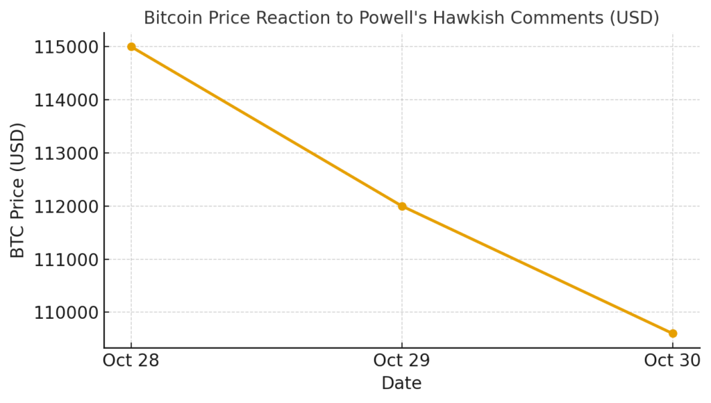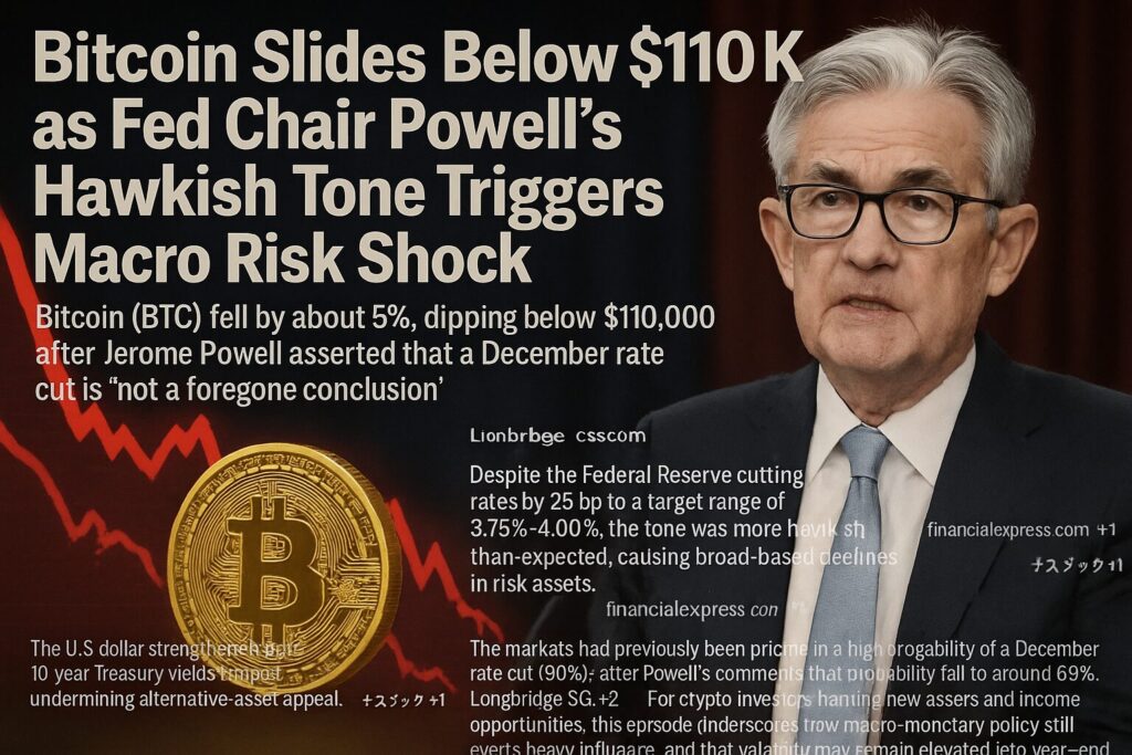 - Bitcoin (BTC) fell by about 5 %, dipping below $110,000 after Jerome Powell asserted that a December rate cut is “not a foregone conclusion”.