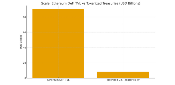• DeFi and tokenized RWA momentum sits largely on Ethereum: ETH leads all chains by TVL (≈$90B), while tokenized U.S. Treasuries top ≈$8.4B and are expanding, with BlackRock’s BUIDL a bellwether—even amid recent outflows.