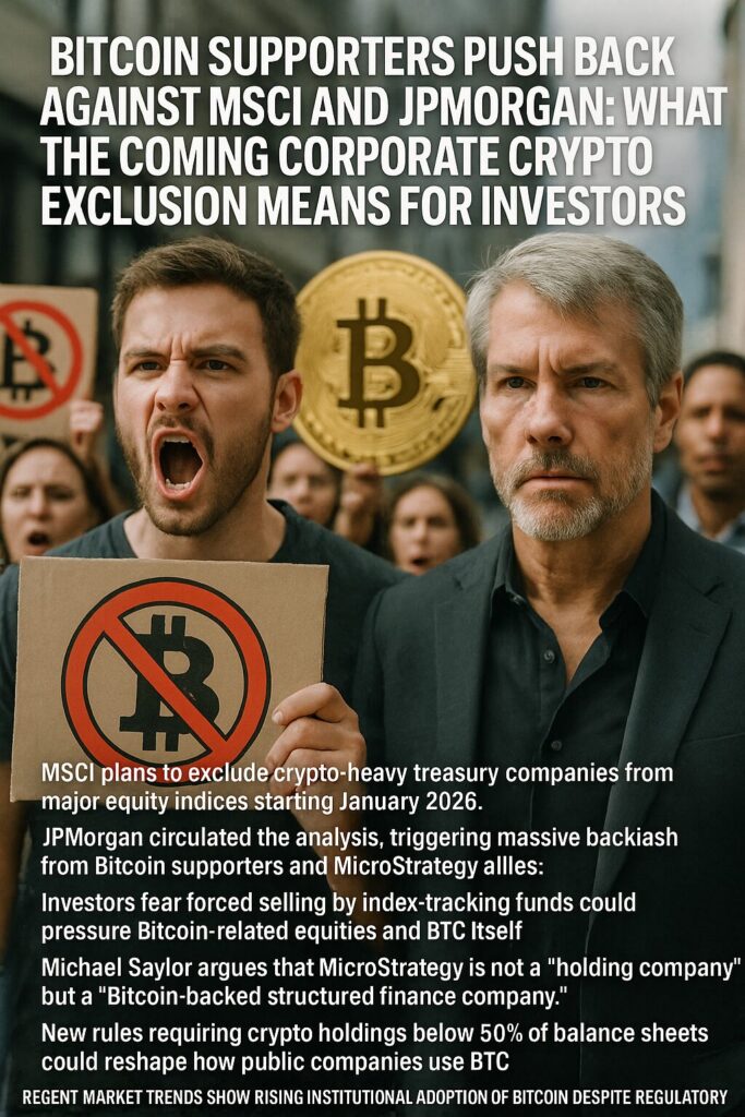 MicroStrategy’s defense, investor backlash, and continued institutional Bitcoin adoption indicate that crypto-treasury strategies are becoming too large to ignore. Whether MSCI’s rule shapes corporate behavior—or whether new financial paradigms emerge—will define the next stage of Bitcoin’s integration into the global economy.