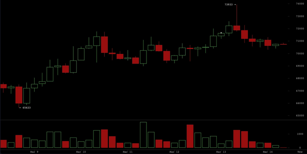 The $74,000 level remains a critical resistance, having capped price action for the past two months.