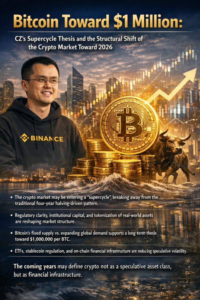 CZ’s $1 million Bitcoin thesis should not be interpreted as a price prediction detached from reality. Instead, it reflects a broader observation: crypto is transitioning from a speculative market to a structural component of global finance.