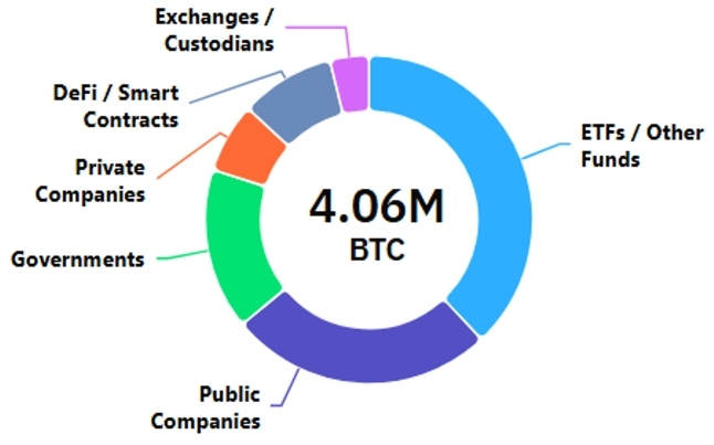 - Twenty One Capital: ~43,000 BTC (~$3.0B) → 4.3%