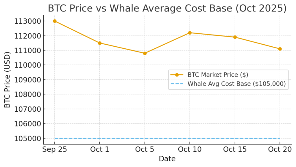 - Key cost bases: Whales who entered at ~US $105,000 may panic below that level. If BTC drops under ~US $105 K, watch for accelerated selling pressure.