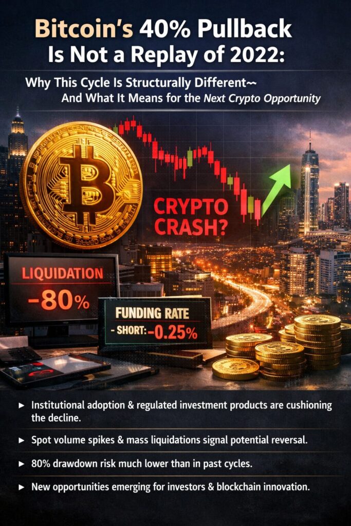 Bitcoin’s 40% decline is undeniably painful—and sentiment has deteriorated accordingly. Yet equating this move with the onset of a 2018- or 2022-style collapse overlooks key structural changes.