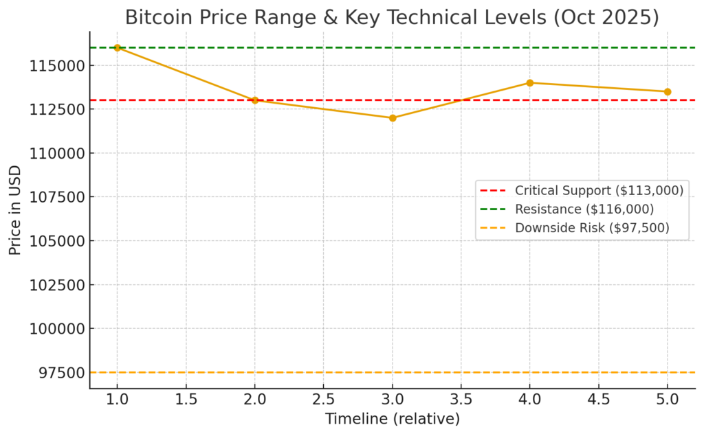 Bitcoin may roam between ~$110,000 support and ~$116,000–$117,000 resistance for weeks until macro clarity emerges.
