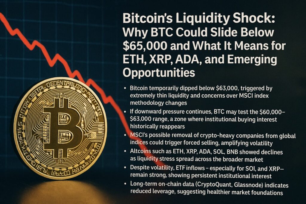 Bitcoin’s Liquidity Shock: Why BTC Could Slide Below $65,000 and What It Means for ETH, XRP, ADA, and Emerging Opportunities