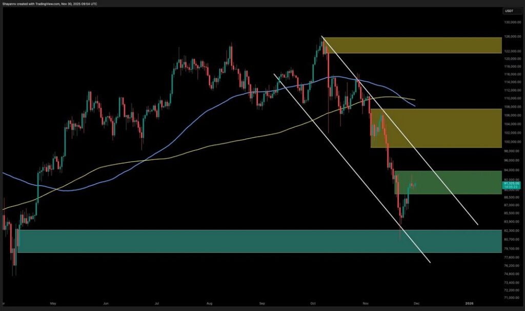 BTC already closed November with a 17.5% monthly decline, marking its worst performance in nearly three years. With December starting off weak, the market is now debating whether BTC will revisit deeper support zones.