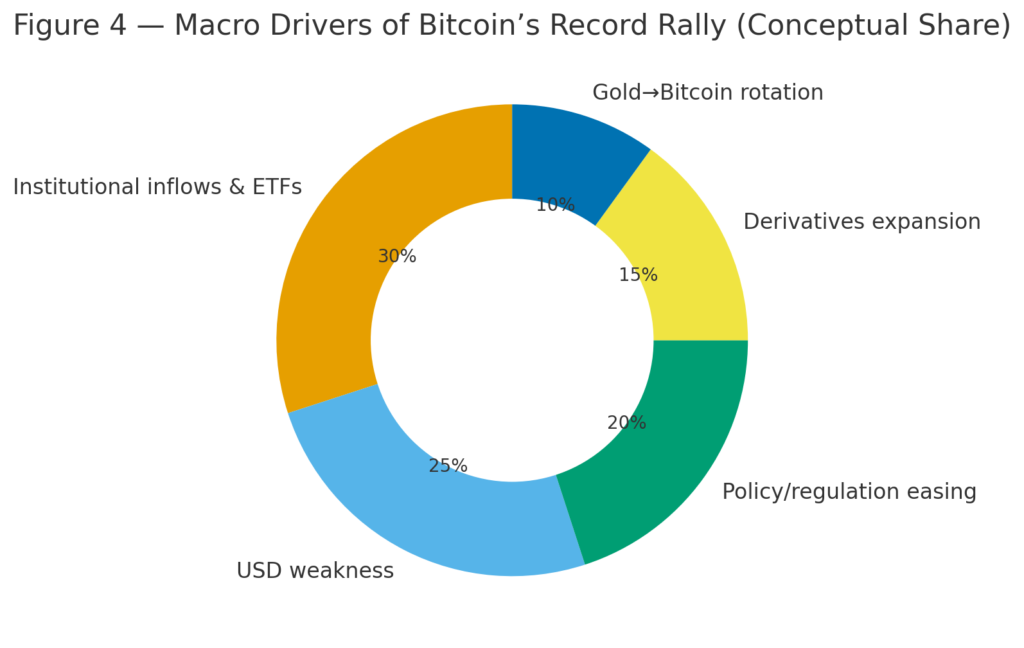 - The rally is underpinned by growing institutional interest, a weaker U.S. dollar, crypto-friendly policies, and momentum in derivatives / ETF activity.