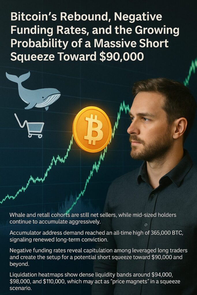 Bitcoin’s rapid recovery from $86,000 and the emergence of negative funding rates point to a market mispricing bearish sentiment. Mid-sized buyers and accumulator addresses are creating strong structural support, while the derivatives market shows the perfect setup for a large-scale short squeeze.