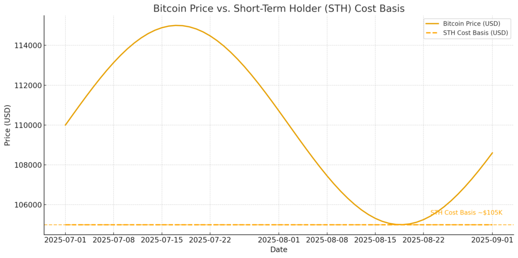 - STH cost‑basis is a critical technical level: price held just above it, suggesting continued bottoming and potential upside.