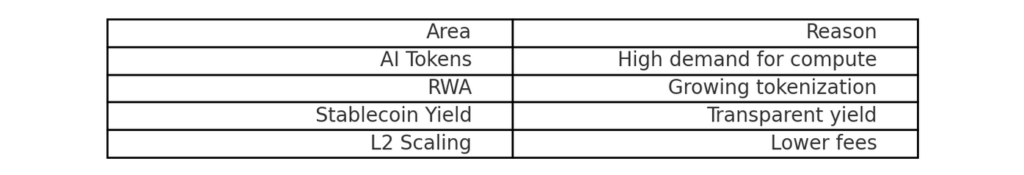 These benefit from on-chain settlement and rising demand for transparent yield instruments.
