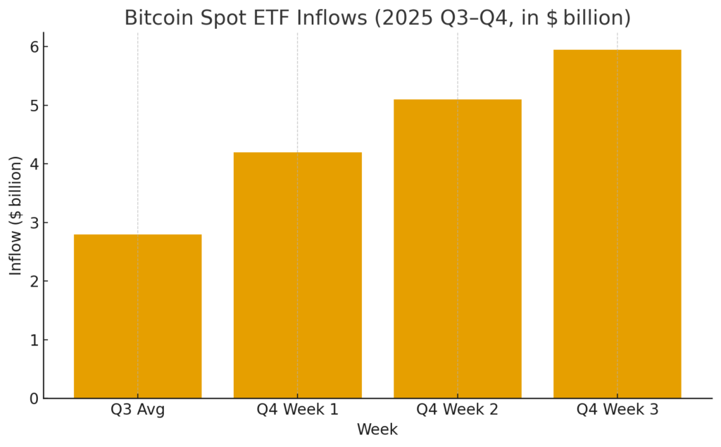 In past cycles, Q4 has often been Bitcoin’s strongest quarter—portfolio rebalancings and risk-seeking behavior tend to accelerate in this season. Analysts caution, though: sustainable momentum likely requires inflows to persist.