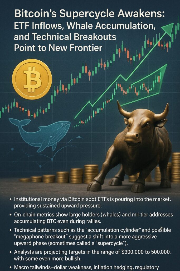 “Bitcoin’s Supercycle Awakens: ETF Inflows, Whale Accumulation, and Technical Breakouts Point to New Frontier”