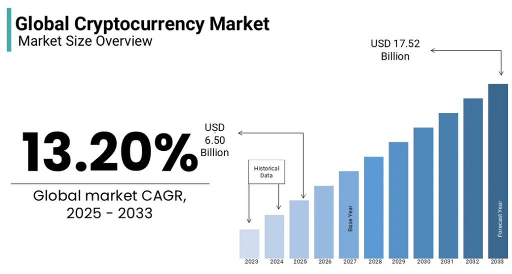 • Institutional adoption accelerates demand for custody, compliance, analytics, and infrastructure.