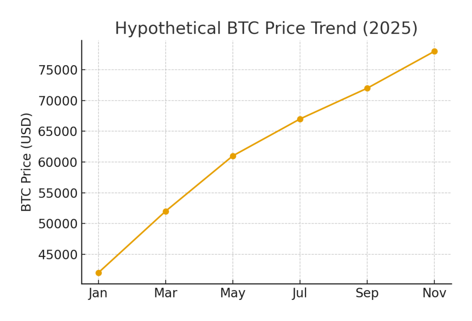 Bitcoin has shown a hypothetical year-to-date upward trajectory from $42,000 to $78,000, illustrating a bull-market structure characterized by: