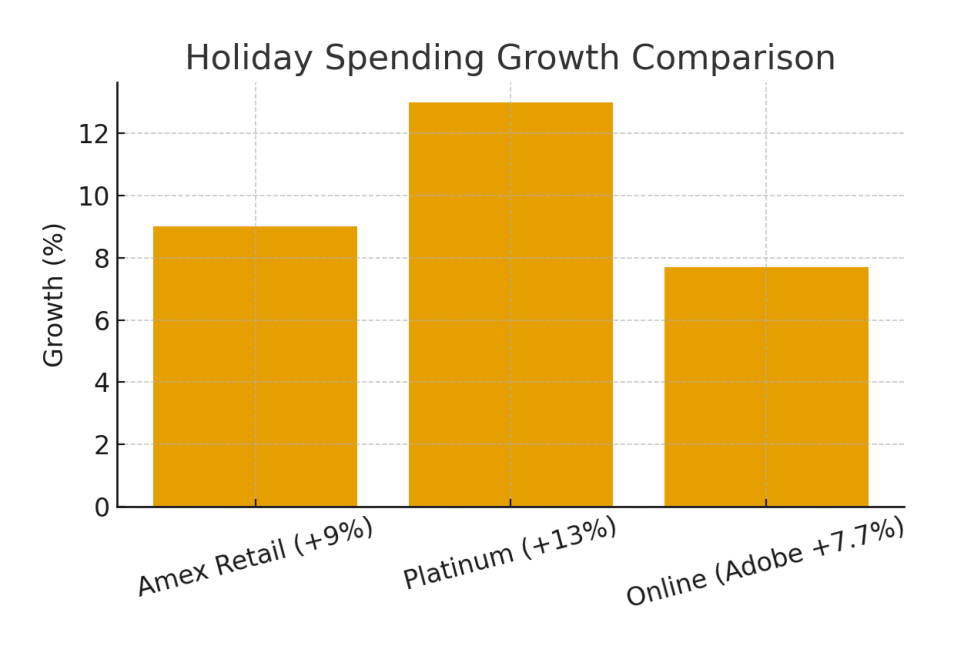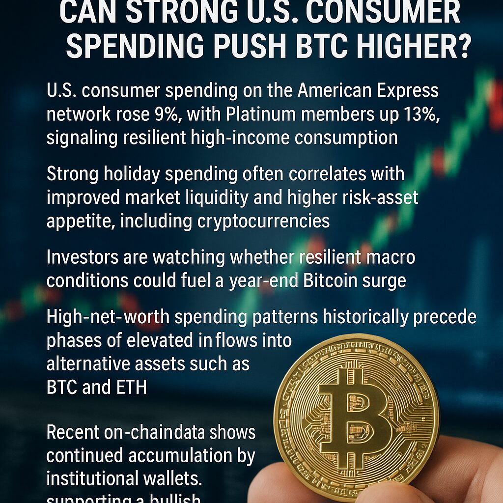 As the year draws to a close, analysts across both traditional finance and digital asset markets are closely examining U.S. consumer behavior—particularly during the holiday shopping season. The latest data from American Express (Amex) has provided an unexpectedly strong signal: domestic retail consumer spending on its network rose 9% during Thanksgiving week, while Platinum-tier members increased their spending by 13%.