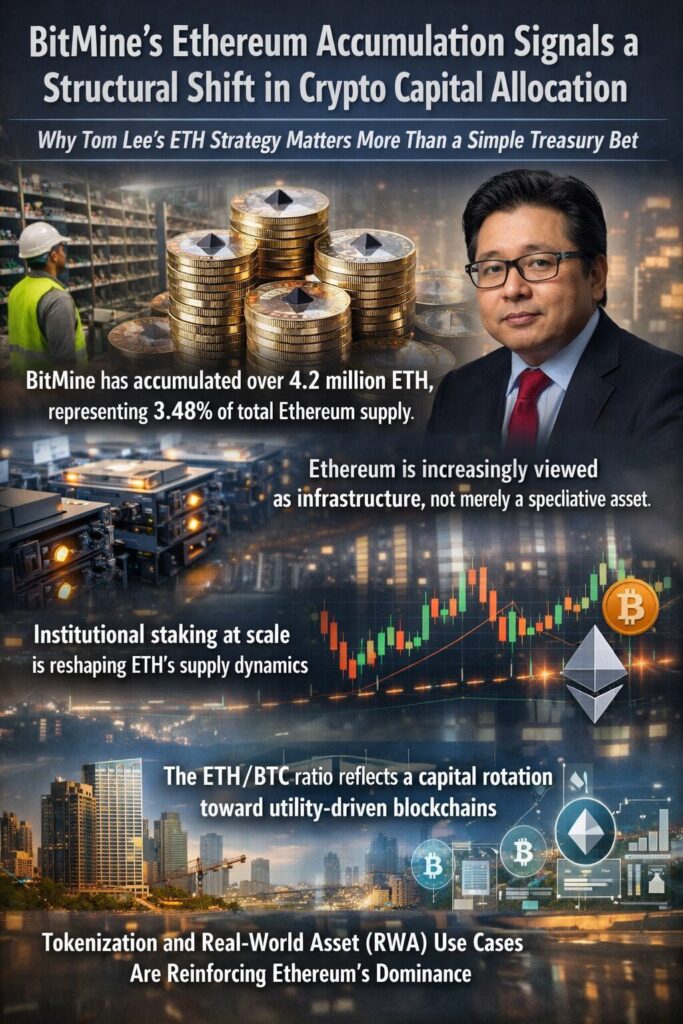 BitMine’s Ethereum Accumulation Signals a Structural Shift in Crypto Capital Allocation : Why Tom Lee’s ETH Strategy Matters More Than a Simple Treasury Bet