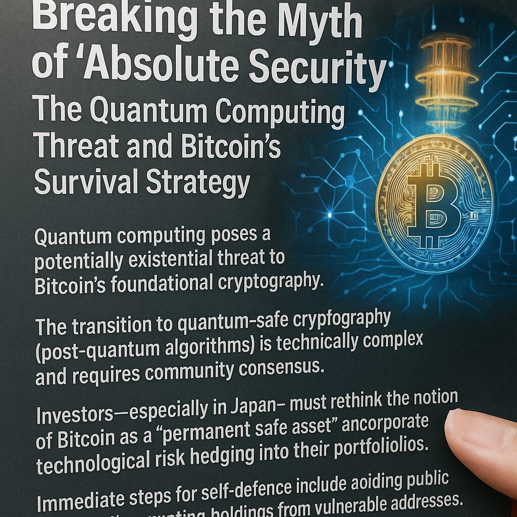 - Investors—especially in Japan—must rethink the notion of Bitcoin as a “permanent safe asset” and incorporate technological risk hedging into their portfolios.