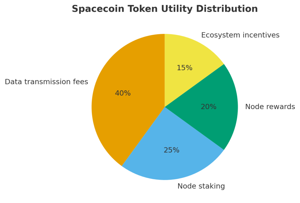 - Data-transmission fee: Users pay the token (or an on-chain asset) to transmit packets via nodes/satellites. (As founder said: “to send data packets another node, you need Spacecoin.”)