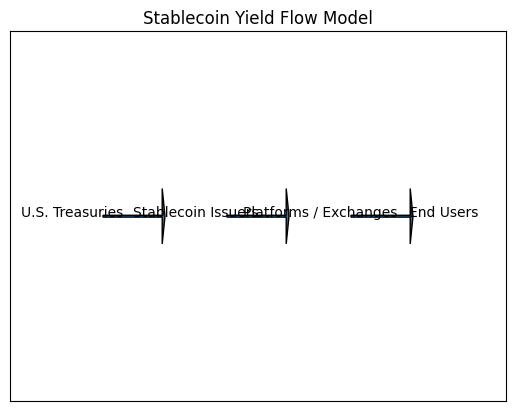 Stablecoin Yield Flow Model (Treasuries → Issuers → Platforms → Users)