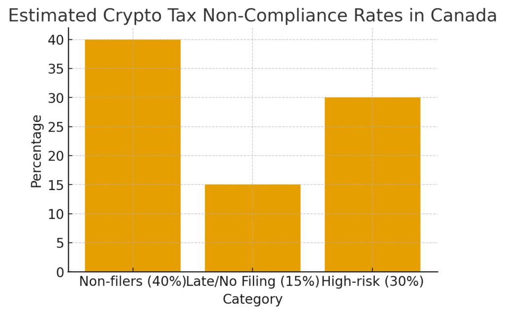 - An estimated 40% of Canadian crypto users are not reporting taxes, exposing a massive compliance gap.