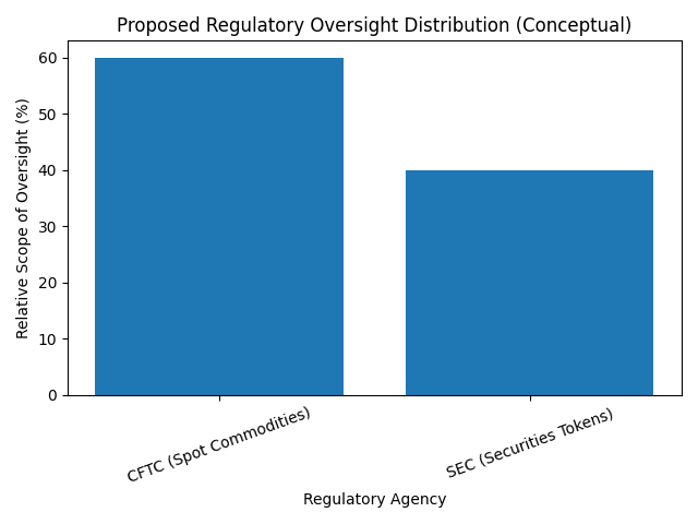 - The CFTC would supervise spot markets for major digital commodities such as Bitcoin and Ethereum.