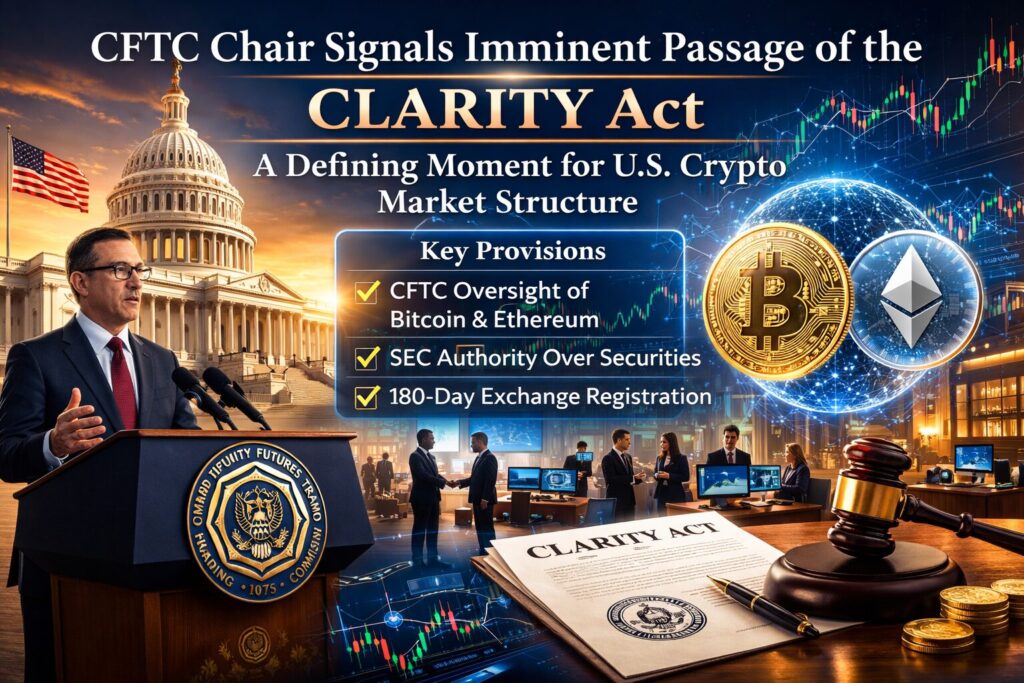 The U.S. crypto industry may be standing at the edge of its most important regulatory turning point since the launch of Bitcoin. According to the Chair of the Commodity Futures Trading Commission (CFTC), the long-debated crypto market structure bill—formally referred to as the CLARITY Act—is “imminent.” If enacted, it would redefine regulatory authority between the CFTC and the Securities and Exchange Commission (SEC), potentially ending years of jurisdictional ambiguity.