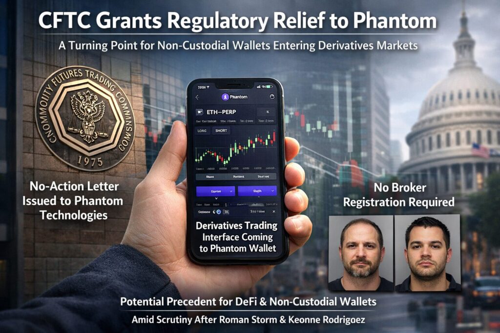 Through its Market Participants Division, the CFTC issued a no-action letter to Phantom Technologies, effectively stating that it will not recommend enforcement action if Phantom proceeds with its planned product expansion. Specifically, Phantom intends to introduce a derivatives trading interface within its wallet.