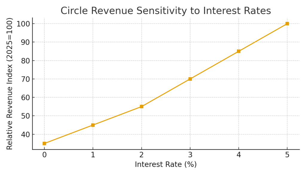 Because Circle’s revenue model depends heavily on interest yields, a falling interest rate environment would erode its margins. Paradoxically, though, lower rates can also reduce the opportunity cost of holding USDC vs. fiat, potentially spurring adoption. This is a double-edged sword.