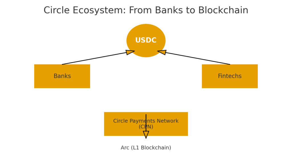 - Circle Payments Network (CPN): A smart-contract–based network designed to connect banks, fintechs, and blockchains, facilitating stablecoin-based cross-border payments, local fiat payout, and on-chain interoperability.