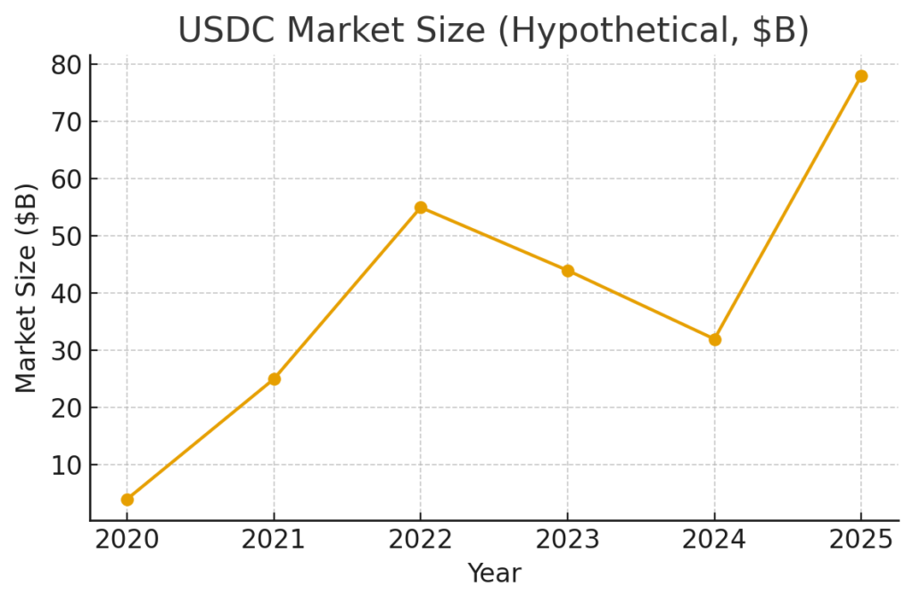 USDC is currently one of the largest stablecoins in the world, with a circulating supply of approximately $78 billion. Across the broader market, stablecoins represent a $300 billion asset class and continue to grow rapidly as institutional adoption increases.