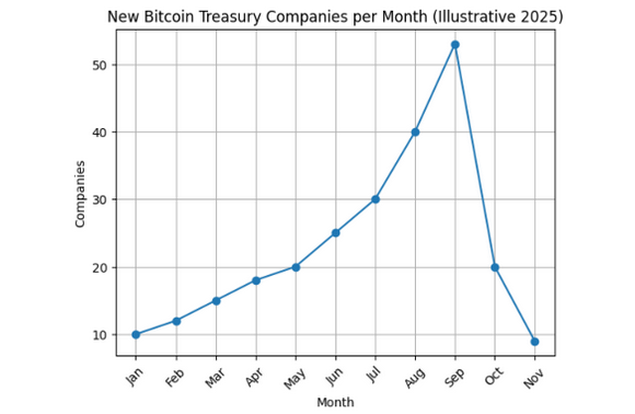 While Bitcoin adoption surged earlier in 2025—reaching a peak of 53 new treasury-adopting companies in Q3—the pace collapsed to just 9 new companies in Q4.