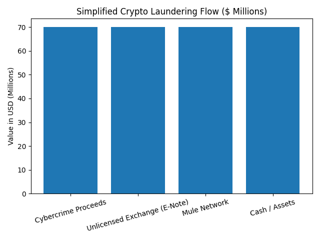 [“Simplified Crypto Laundering Flow ($ Millions)”]