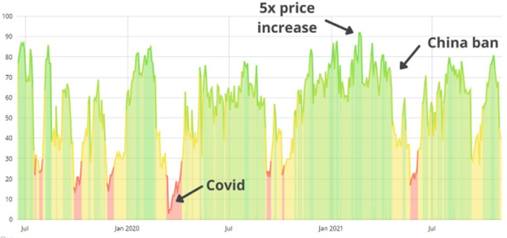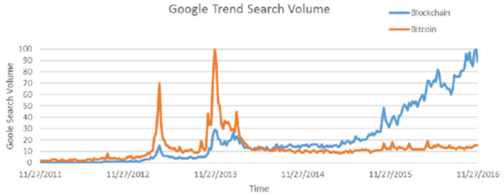 • In 2015–2016, low search interest followed the Mt. Gox collapse, just before Ethereum and DeFi primitives began gaining traction.