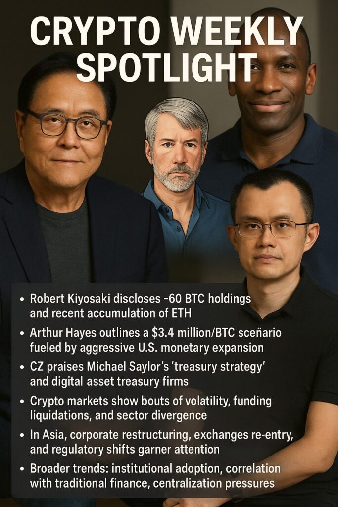 Over the week of September 20–26, the crypto world was abuzz with high-profile disclosures, massive macro forecasts, and evolving business strategies. Kiyosaki’s public declarations of BTC and ETH ownership reinforce ongoing retail interest. Meanwhile, Arthur Hayes’s vivid $3.4 million forecast — even if symbolic — underscores how intertwined crypto valuations are becoming with macro policy expectations. The increasing prominence of crypto treasury companies and their influence on token demand is shifting the institutional landscape.