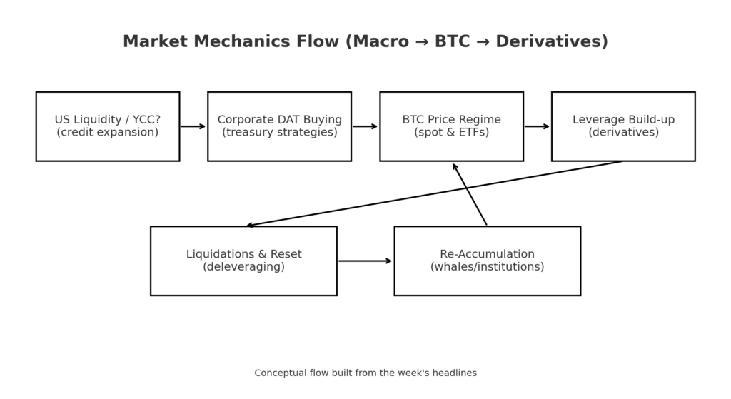 At the same time, market behavior remains volatile: sharp derivatives liquidations, altcoin rotations, and diverging sentiment suggest that risk is very much alive. In Asia, structural changes—corporate rebrands, exchange re-introductions, and cross-border M&A—point to renewed energy in the region.